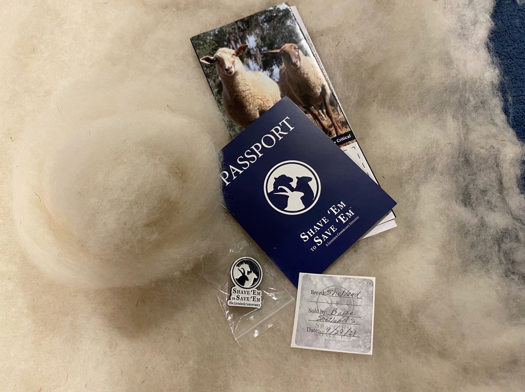 I found some more Texas grown spinning fiber! I was connected to another spinner through our local coffee shop, and she sent me many resources, including the name of a Texas rancher that raises Shetland Sheep (https://baizeshetlands.weebly.com/). Shetland sheep were developed in Scotland to be competition for Italian Merino wool. These sheep are also thriving in the Davis mountains of Texas! I ordered a prepared batt, since I wanted to see how the fiber is supposed to handle before I delve into the raw fleece. In the box with the wool was a passport stamp for the Shave ‘Em to Save ‘Em initiative by the Livestock conservancy. So of course I ordered a passport for my new sticker. There are many breeds of endangered sheep in the passport, and so many opportunities to learn about different wool!