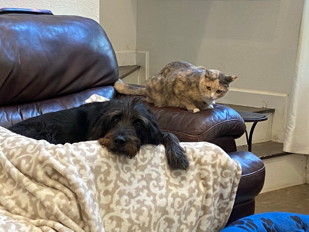 I do like the “war” between the color schemes, and I may cut down the very large (to me) tapestry frame to a lap size, but for now there are many, many portable projects to pursue.