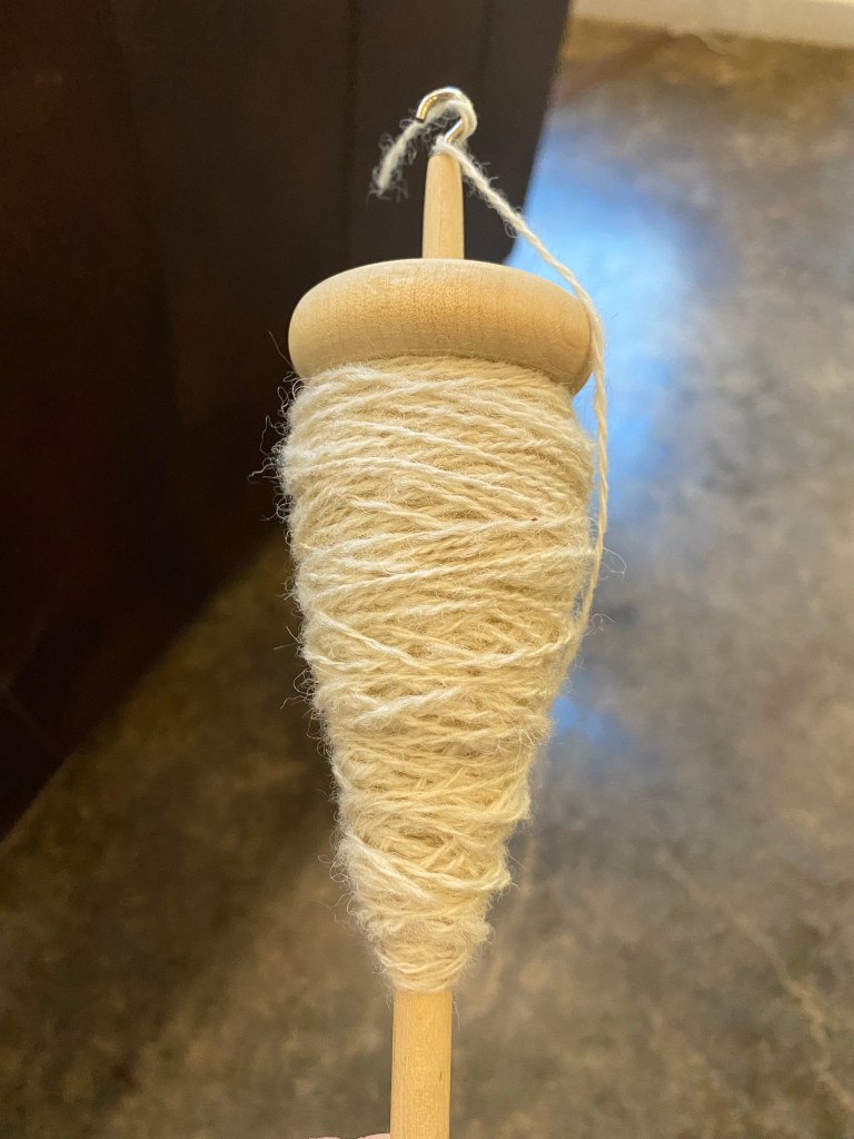 My Shetland wool yarn turns out to be just shy of lace weight once I plied it. I wrapped it on my Niddy Noddy and counted 29 wraps per inch (wpi). Fingering weight is 18-30 wpi, and lace is 30-40 wpi. Hm. That is OK. This first batch (or really three, since I was also testing turned spindles as well) is really just to have something to use for Shetland lace knitting samples, to see if that is a knitting I will enjoy.