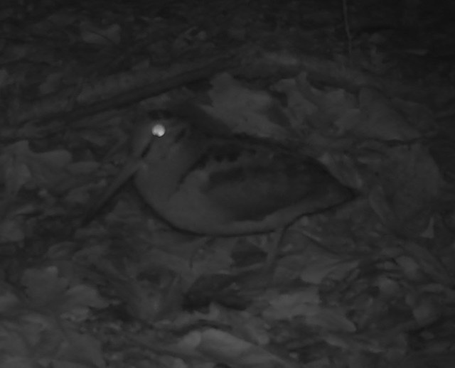 Well here is something new on the trail cam: an American Woodcock. We were quite shocked when we saw the long beak of a shore bird in the camera footage. The camera is situated along a mostly dry creek bed on the edge of our property, but we’ve been here four years without an identifiable picture of one of these (also called timberdoodles). We are on the western edge of their territory. I rather hope it likes it here and we get more sightings. It is such a curious looking little beastie.