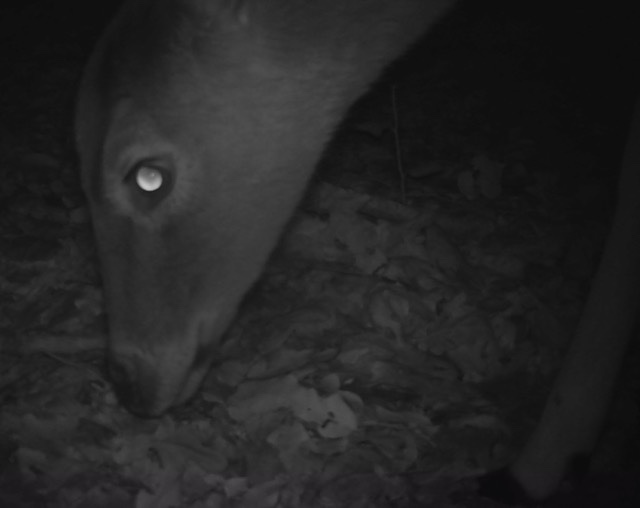 I rather like where the trail cam currently resides for the close ups of skunks and woodcocks, but it is too close for deer. We get pictures of deer parts. Oh deer.