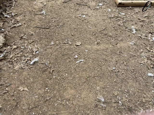 My hens love scratch; some of them love it even more than grubblies (dried fly larva). They gobble it all up, except for one single type of grain (I believe it is the rye). I now have runs sown with a single seed. I’m hoping with all the scratching and pecking, some of the seed has enough soil contact that when the spring rains come they will sprout. Or the cardinals will steal it all. I guess we’ll see.