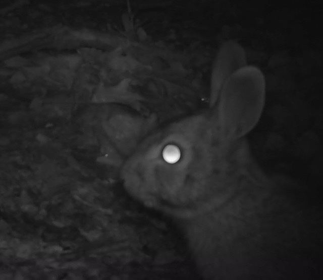 Trail cam caught the image of a wild rabbit! I haven’t seen one of those in awhile. I was afraid the local cat population had taken them all out. I’m glad they are still around.