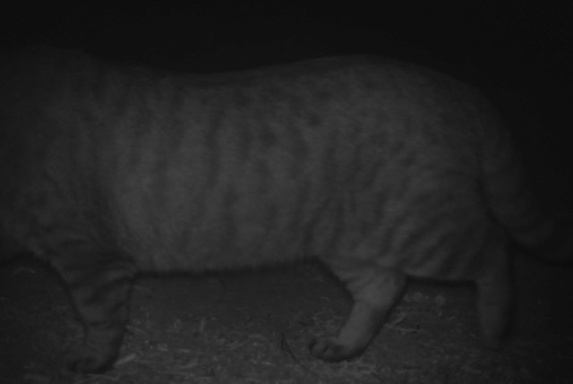 I put batteries back in the trail cam, and left it out where we trap cats to see who might be left to take in to be fixed. The cats aren’t very cooperative with showing their ears to the camera. Mostly I see sides and tails!