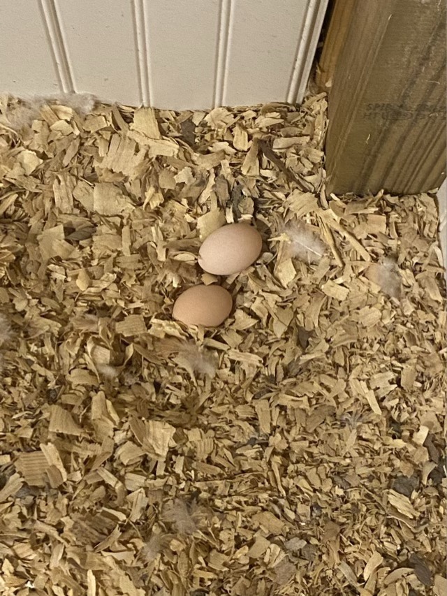 A couple of the hens have decided the corner of the coop needs a nest. The pine shavings pile up there, and they made a nice indent in the top and laid their eggs. I only have six other nest boxes. At least it is an easy place to check for eggs.