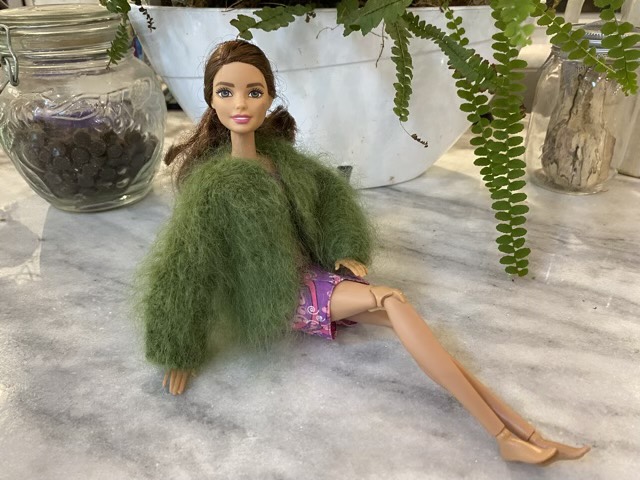 The cardigan has a very mossy look. There was just enough yarn to complete the sleeve and sew up the seams; I trimmed about 3” of waste once the ends were woven in.