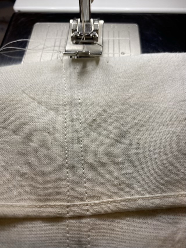 I hemmed both long edges of the strip with a 1/4” hem foot on my sewing machine. (Hands down, this is my favorite foot.)