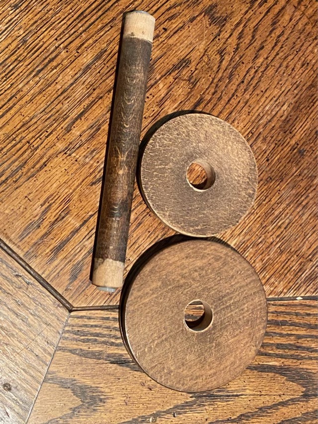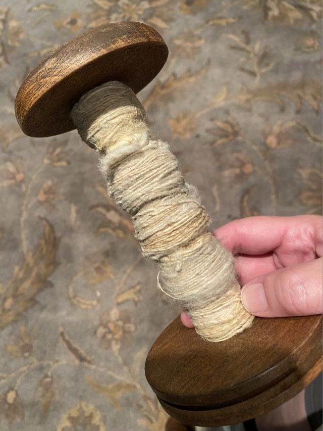One of the bobbins that came with my vintage wheel (there were 3, which is the original number!) needed fixing. The ends had come unglued from the shaft. There was still yarn wrapped around the shaft, but it was very old and deteriorating. So the first step was to get the yarn off.