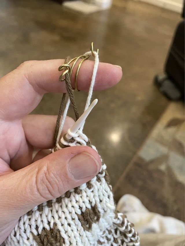 First I took out the broken metal, which was held on with a screw rivet (love these) and some stitches.