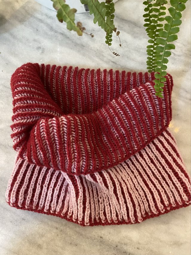 Done! I have finished my first knit along! It took me 15 days to complete (working in fits and starts), and I have learned a new knitting technique. The finished cowl is nice and squishy and quite appropriate for its intended use. The stitching is easier than I anticipated once I learned to recognize the brioche stitches versus regular stitches. The Field Guide 21 from Modern Daily Knitting is a good resource.