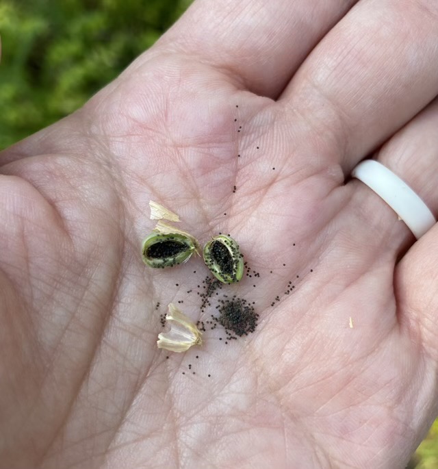 Now I see how the first seed could have arrived in my flower bed. I wouldn’t take much for these microscopic vessels to hitch a ride on the leg or feather of a bird. Hm. I hope they don’t have to pass through a digestive tract to germinate. And I hope it doesn’t depend on the airspeed velocity of an unladen swallow.