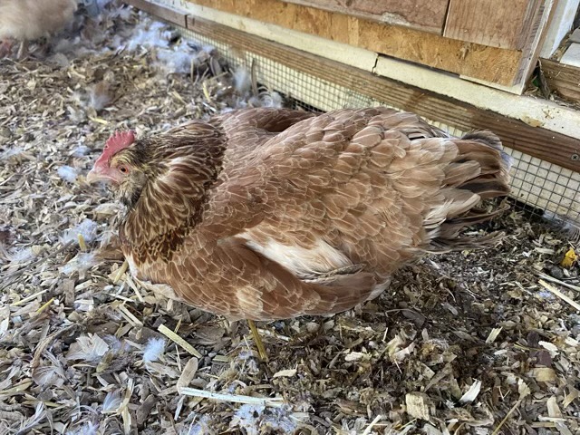 Just wanted to let you know that Magic is still kicking. Well, not really kicking as her bum leg is in its acting up cycle. I’ve lost count how many times she has gone through the heal/hurt series, but I feel there is a pattern. When she hurts her leg, her food intake decreases and she rests more. Her weight goes down. Her leg heals. She is able to get around and eat all the things, gains weight until she rivals or surpasses the others, then hurts her leg again. Repeat. Always the same right leg. At this point I don’t do much special except make sure she is on and off the roost at the appropriate times, pick the shavings of her belly that she can’t reach, and give her derrière an occasional rinse to keep her clean. She can usually get around some, and it gradually gets better. Tough bird.