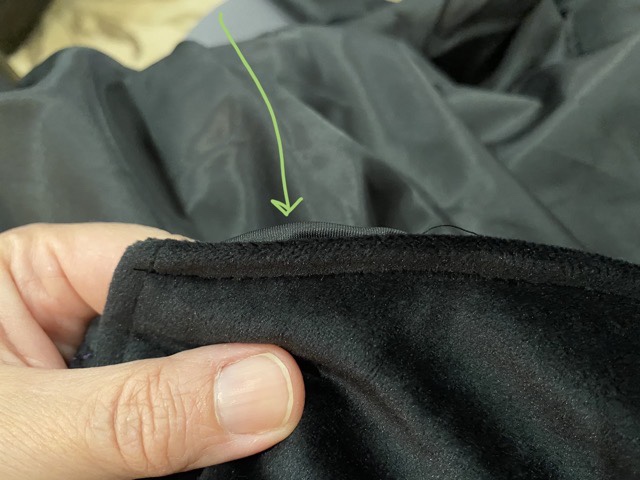 Inevitably when I sew a lining, a section of the lining slips and shows past the edge. I use pins and go slowly, but lining material tends to be slippery, especially when sewing satiny fabric to velvet.