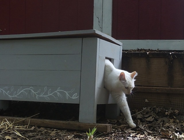 The trail cam and I have been photographing Mr Tom, the neighbor’s cat that hangs out with his buddies in our meadow. So I’ll share the best ones with you here.