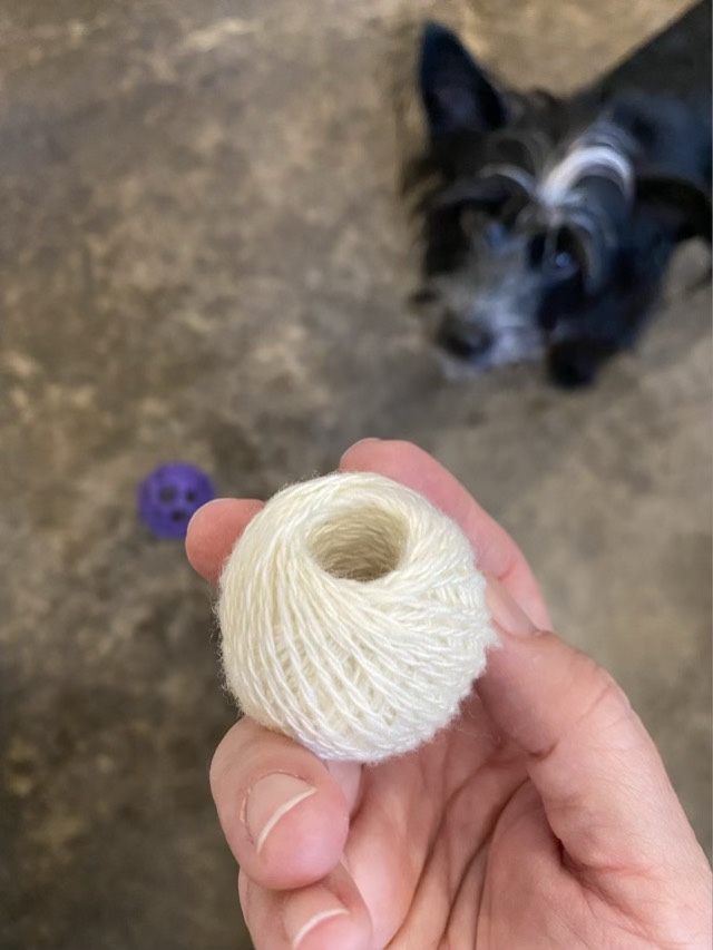 I spun this on my 3D printed spindle, drop spindle style, as I walked the neighborhood. It is even more lovely to spin than the commercially prepared roving. I’m rather falling for Rambouillet.