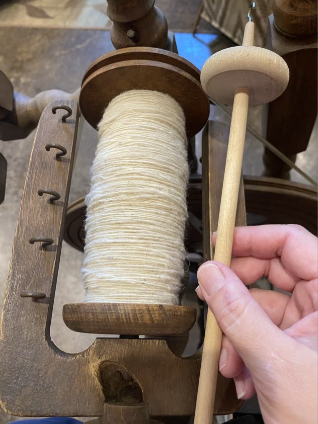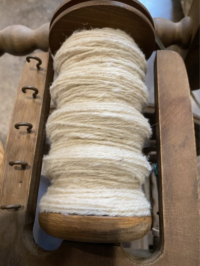 I have finished spinning the singles from my Clun Forest wool roving for the Shave ‘Em to Save ‘Em campaign by the Livestock Conservancy. I’ve been spinning this wool on a drop spindle during my walks through the neighborhood over the past two months.