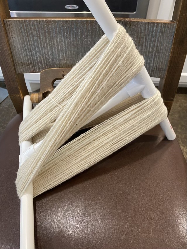 It was also easy to wind the yarn onto my niddy noddy from the chairs.