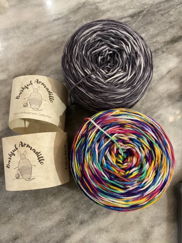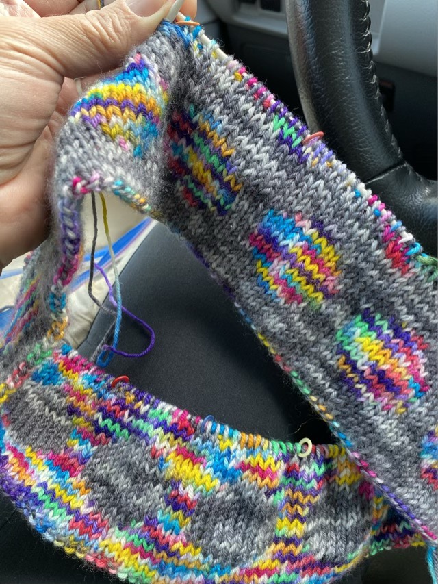 I’m back to knitting for my next “in the car” project. I bought some beautifully dyed fingering weight merino wool by Bashful Armadillo and wanted to do a double knit project.
