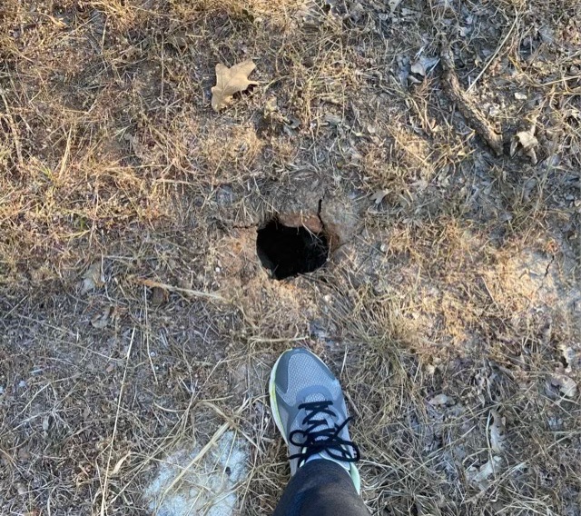 I set up our trail cam to see if this was a water made hole, or a critter made hole.