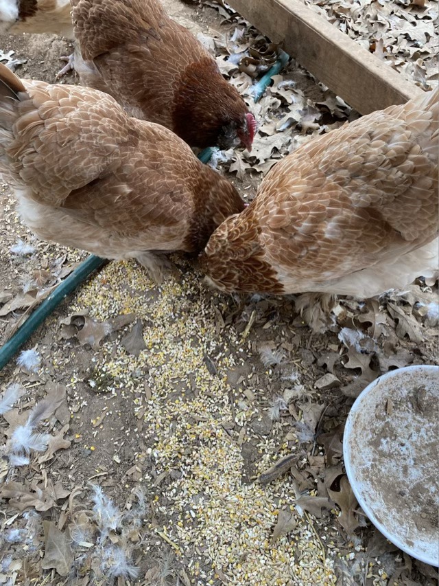 You may notice in the picture above that not only are the detested seeds from the scratch on the ground (see yesterday’s post), but so is a significant amount of pelleted food. Hm. I think my hens have been surviving on dried grubs and cracked corn, enough so that they prefer not to access their regular feed. Busted.