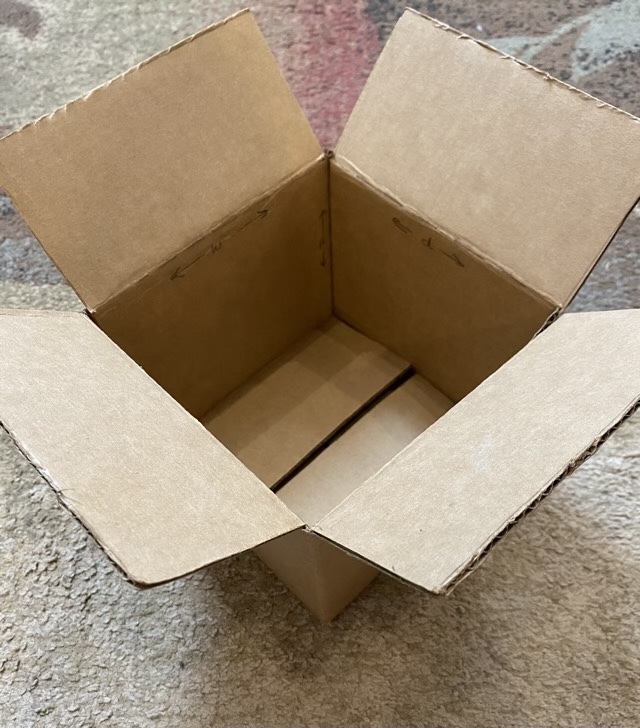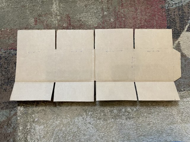 Start by deconstructing the old box. Most cardboard boxes have a single glued seam along a side edge that can be pulled apart. Lay the box flat and layout the cut and fold lines for the new box.