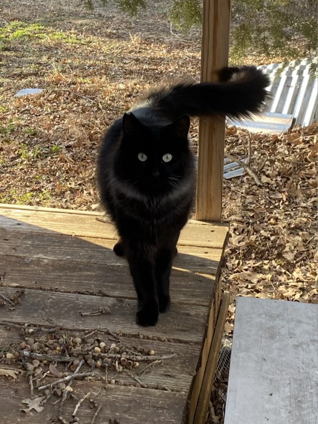 Here is another picture of not-my-cat, but isn’t he in a pretty pose? This definitely gets marked as a favorite and saved for a reference for future art. The arc of the tail! The perfect feet! That light necklace of fur that gives him an even more regal air! Those eyes! I missed the picture of him meowing at me. He will approach, but not allow the familiarity of pets let alone brushing. He is Mr Tom’s Shadow, and they hang out in the meadow.