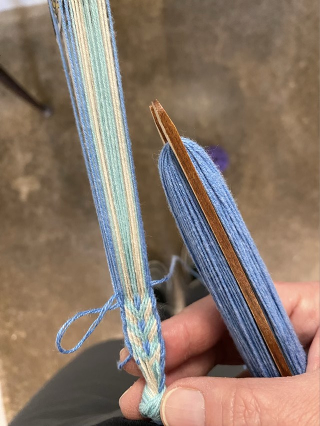 I have also added an inkle loom to my wish list, which would enable me to keep tension on the work at all times and not have to go looking for a stationary object.