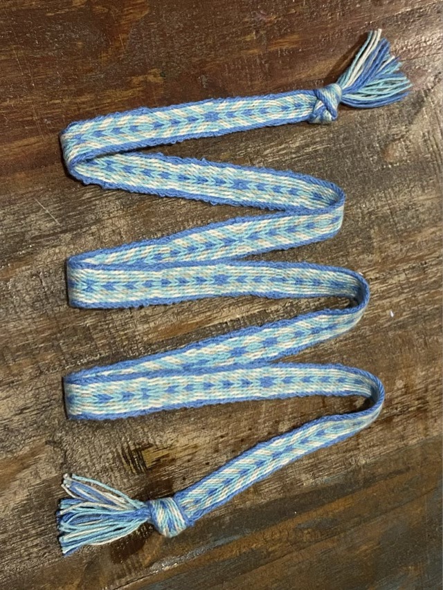The ripples in my band are because I wasn’t tight enough with my weave. I knotted the ends and cut off the extra warp, then ironed the band. It isn’t perfect, but I want to do more. (I do need a better way of keeping track which way I turn the cards. Squirrel.)