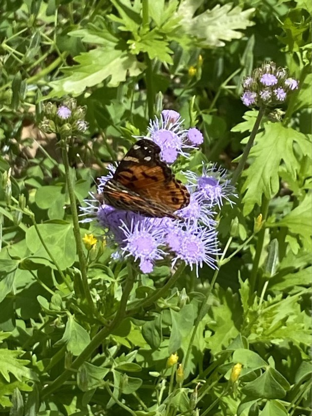 We planted one Gregg’s Mist Flower in the front garden. We tried a different variety of mist flower previously, but they didn’t take well, and didn’t attract butterflies. These are growing well and nearly every time I walk by, I see a butterfly! Hurray!