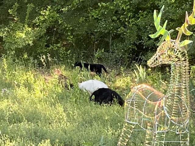 The feral long-haired calico cat stayed in isolation (a spare bedroom in the house) for over a week after her spay. She turned out to be advanced in a pregnancy when I took her in (hard to tell under that long fur). Since that is a risky operation with a high probably for complications, we kept her calm and resting afterwards. She ate, drank, and used the litter box, so I felt OK keeping her inside, especially since we had cold wet weather for that week. When the weather cleared we took her back to her territory. Getting her back in the cage was tricky, but my eldest, the cat whisper, managed it. The cat bolted from the cage into the woods, but within five minutes I saw her in the meadow reacquainting with her family, which includes Mr Tom, Shadow, a gray tabby that is one of her adult kittens, and a short-haired black female that have also been through the TNR process. I’m hoping this is my last trapping for awhile. The other cats seemed to have cleared out.