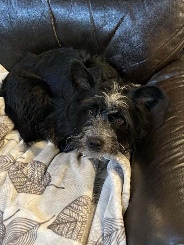 I threw a couple fuzzy blankets onto my chair as I was picking up, and Izzy took it as an invitation to settle in. She is particularly pleased because she won the spot battle and over Missy the dog, who has decided a cushy blanket on my chair is The Place To Be.