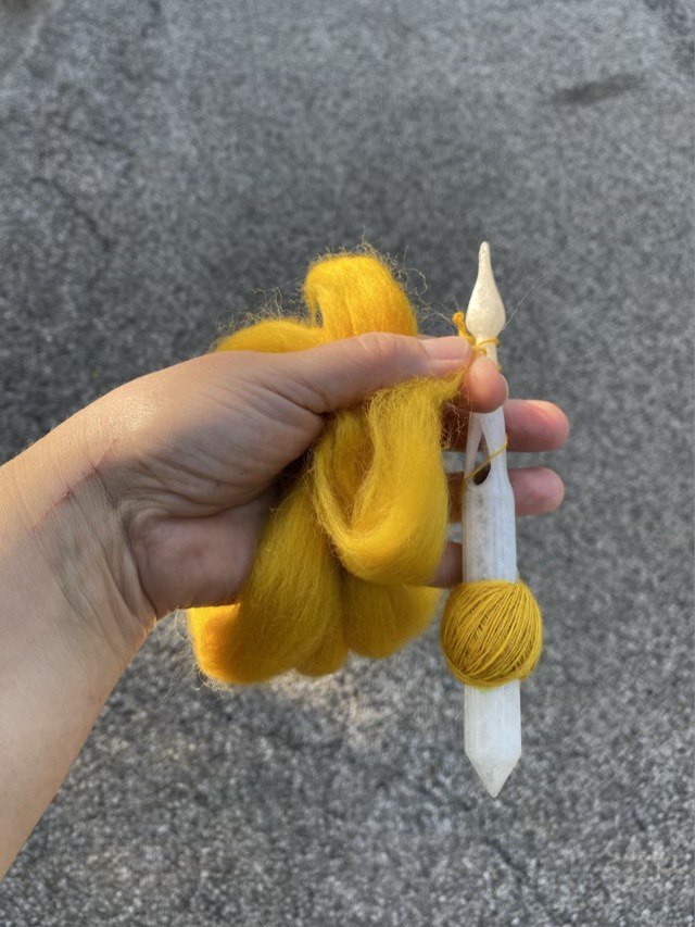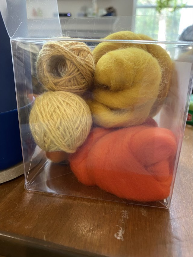 My youngest gave me a box of yellow to orange dyed merino wool and I decided to spin it up separately rather than blend it (so many choices with these bundles of colors!)