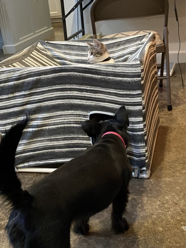 To test the fit and hold, I put Thor on the top. He thought the hammock was so comfy he settled down for an hour nap. While he was cuddled up, Izzy the cat and Missy the dog also explored the new object.