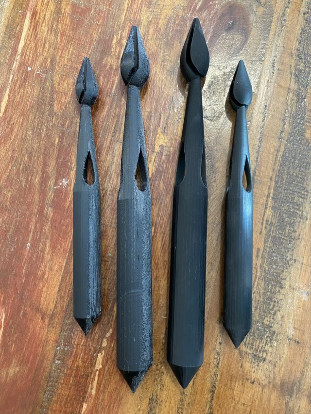 I have been collaborating with a local 3D printer, X of All Trades, to design a spindle that can be used as a supported spindle or a drop spindle, adjustable weight, and a body which acts like a nostepinne to make center pull balls as you spin. The challenge has been the narrow neck breaking, so we have been experimenting different materials. The last round of prints using bottle plastic looked promising, but the filament printing isn’t precise, and tended to bubble and create rough edges. Then they found Tough Resin. 3D printed resin can make much more precise and smooth objects, but tends to be brittle, as I found out on our first printed rounds. Tough Resin fixes the brittleness and with some tweaking of the head and neck of my model, X of All Trades has printed a lovely tool that so far has not shattered when dropped.
