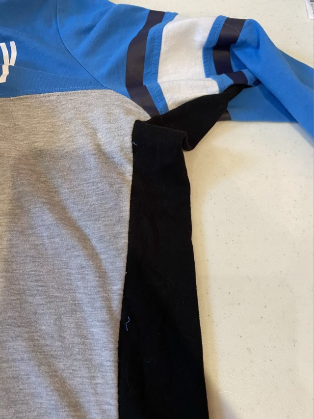 I was quite pleased with how the modification came out. The shirt fits better and looks like it was originally designed that way. My youngest is happy because the shirt is now much more comfy.