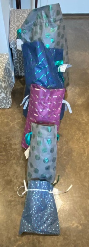 Amazon has been distributing non-woven gift bags for awhile now, and I have amassed a collection. I do reuse them, many times, and to organize them I sorted by size (which is conveniently color coordinated) and used one bag of the group to hold the others. That way, at a glance, I can tell about how much the bags inside will hold.