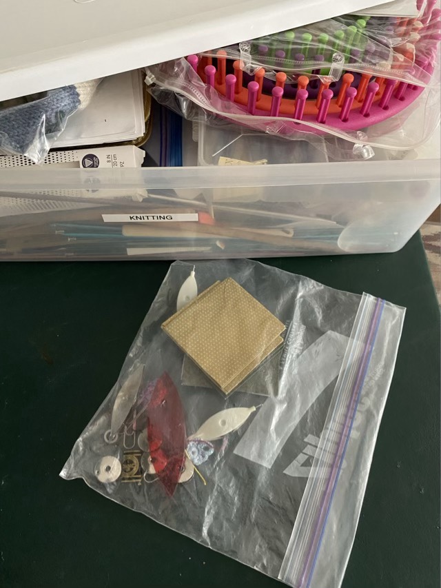 I have inherited a variety of crafting implements over the years, so shopping in the craft room is a common occurrence. I did manage to make a lopsided star in tatting. Skill development in this area continues.