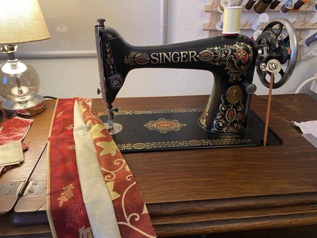 Now I’m sewing strips of scrap fabric together with the Singer model 66 treadle sewing machine. I’ll figure out something to make with the pieced together fabric later (probably bags, I like bags), but for now it is an easy way to exercise the machine. My treadling is getting better as well; in those long straightaways I can really get the speed up!