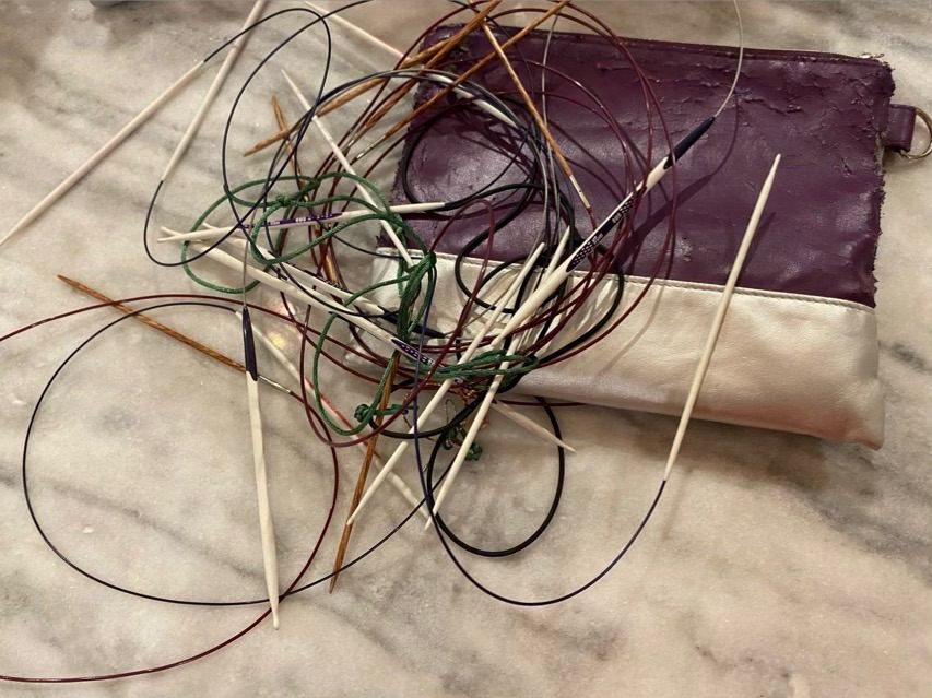 The free bag I was using to hold my circular knitting needles disintegrated, literally. The outer coating was peeling off. Storing circular needles in a pouch is also problematic as they tend to tangle and be a right mess.