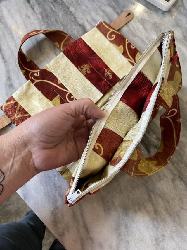 To make the inner pockets, I measured out three sections on each side and sewed from the top of the inner pocket down to a couple inches shy of the zipper. This is so when accessing the pockets from the zippered side, the bottom is closed, but the pockets aren’t too deep to reach the bottom. This took some experimentation. And seam ripping.