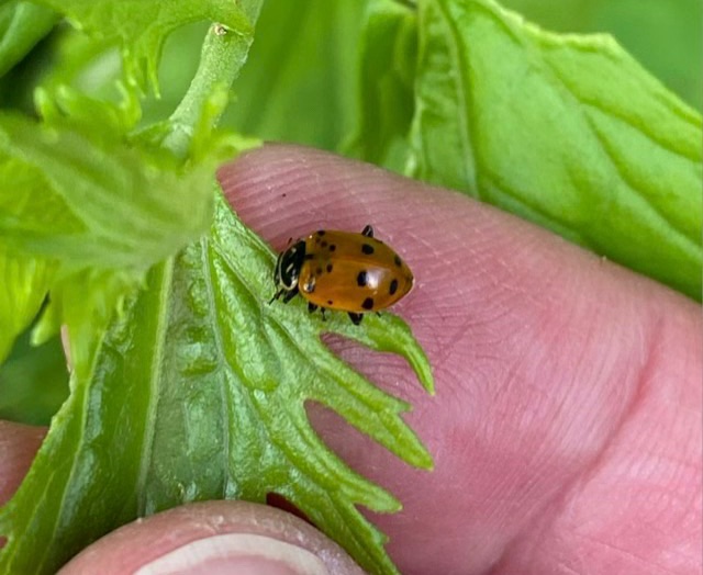 I learned something new when I snapped a picture of a lady bug resting on a Gregg’s mist flower leaf and uploaded it to iNaturalist. The name of my friendly neighborhood native is the Convergent Lady Beetle, because of the “two short white lines on the black pronotum (shoulderlike section behind the head) that converge toward each other.” (Mdc.mo.gov) The markings are harder to see in my picture, but these are the most common of the 500 lady beetle species in the US.