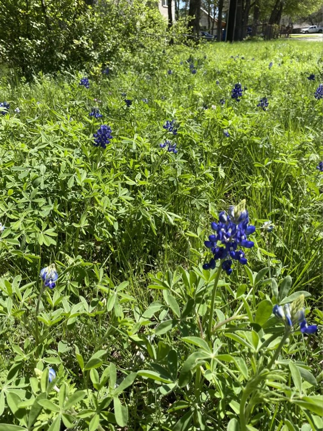 There are more bluebonnets in this area than last year; we’ve had a wet spring. Some of my neighbors’ yards are breathtaking with their bluebonnets. I’m hoping this patch continues to thrive and expand. We won’t mow it until late summer, when the state starts to mow its wildflower filled roadsides.
