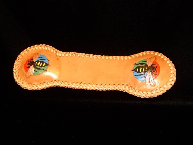 Today we are going back to December of 2004 and a leather book weight I made and decorated with painted bees. It seemed appropriate to share this in nod to my bee visitor this week.
