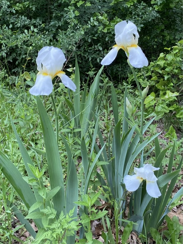 Iris that my Dad replanted at the back of our meadow three years ago or so have bloomed! The rest of the meadow is filled with tall grass, but we are only mowing the edges in hopes that our Indian blanket and basket flowers come up again.