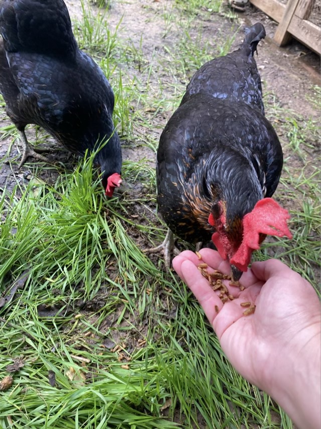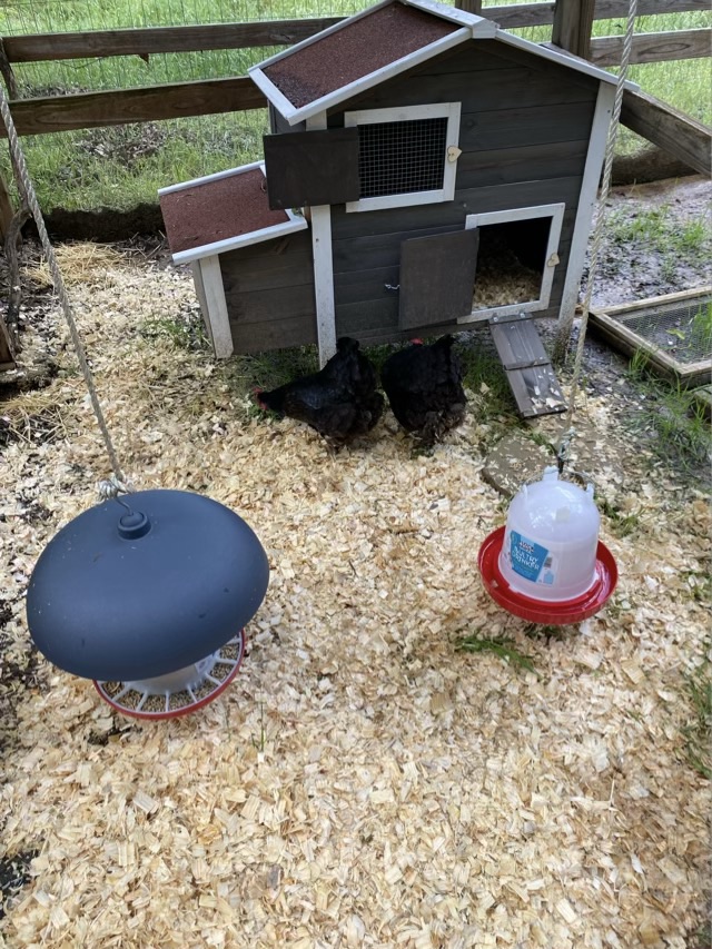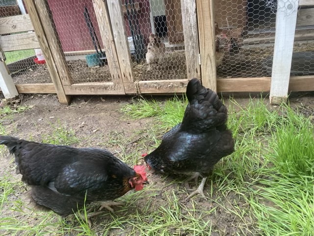 Taco the hen, who usually escapes notice on the blog because she is independent and aloof, passed away. A couple days before I noticed that her crop was hanging low and full, a sign of a good meal, or of sour crop. I was trying to keep an eye on it, and in hindsight I should have started a copper sulfate treatment. We had a previous hen live for almost a year with the condition, and I was honestly hoping it wasn’t sour crop. I found her surrounded by her sisters in the morning in the coop. I was up and in the coop early because we were preparing for the arrival of the two new hens, Wingding and Magnet, a pair of Black Star chickens coming in from family. Taco was given an air burial in the woods, and within a few hours we were welcoming the new hens to their new home.
