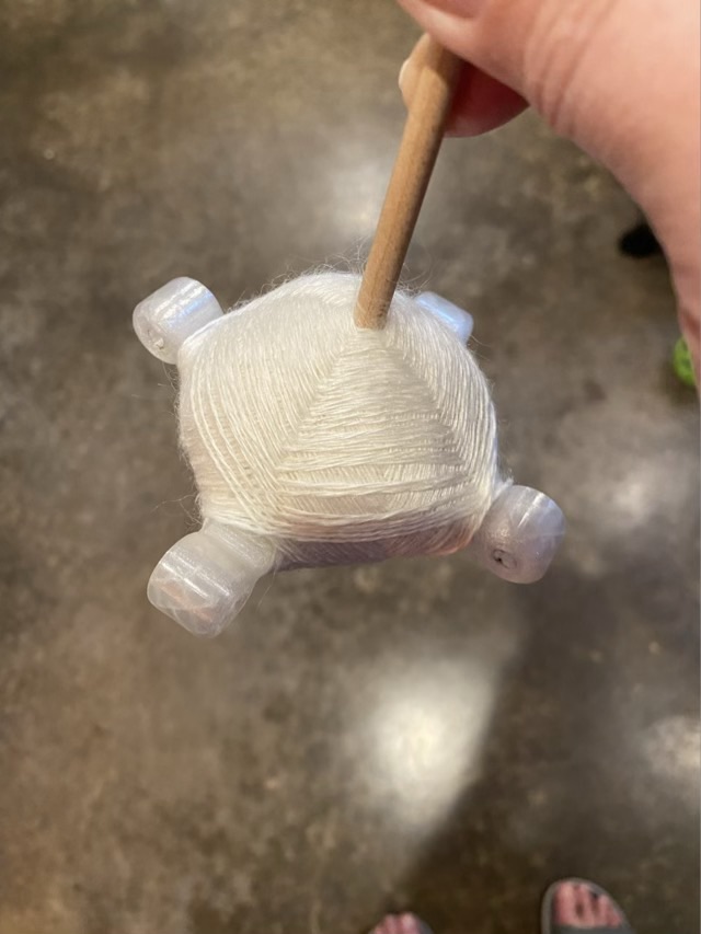 I finished spinning my pineapple fiber sample singles with a 3D printed Turkish spindle. I attempted to use the turtle of yarn to make a two ply yarn.