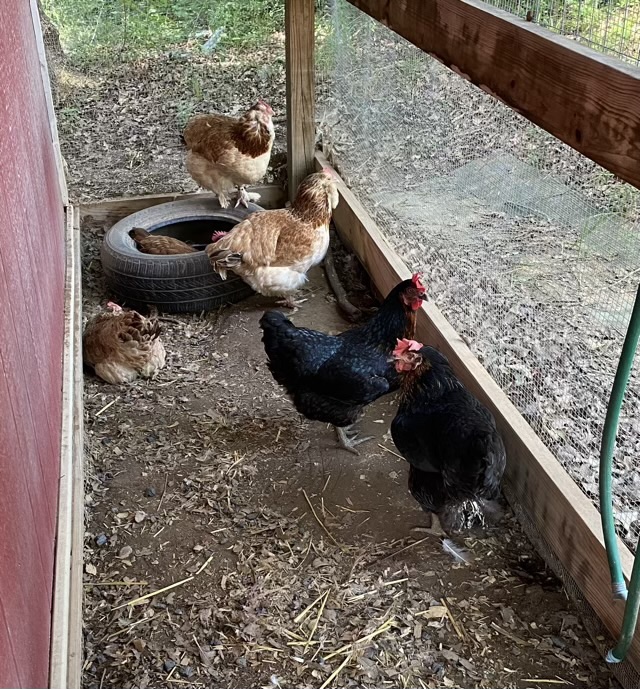 We’ve been keeping the new hens separate from the existing flock, with just a short periods of supervised time together. After three weeks, we opened up all the inside gates and let them mingle. It was already established that the Black Star hens would be dominant, and the Faverolles would run away if she even looked at them, so there was no reason for her to do anything more aggressive than look. We watched in person for a while, then monitored the cameras for the rest of the day. I took the picture above in the afternoon. The breezeway is the coolest part of the run; it is in deep shade and there is almost always a breeze from the shade of the back woods. The best place for all the chickens with summer coming in. Interestingly, they all went to bed in their separate areas. I was hoping the new chickens would find a place in the large coop (there is plenty of room), but they seem to like the little hen house.