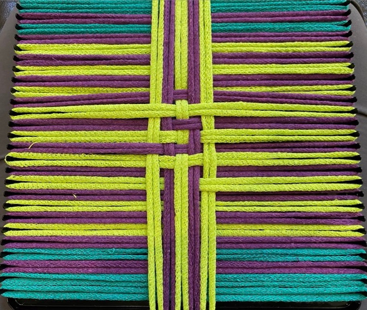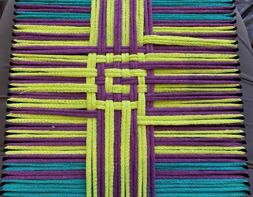 The overall pattern when weaving is three fold: twisted path, plain weave, plain weave.