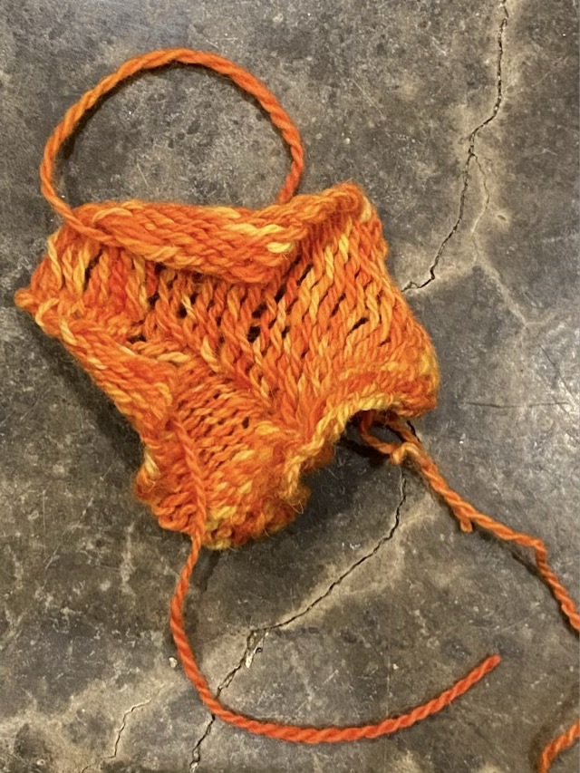 Undeterred, I made a third attempt. Rather than the chain finish, I tried warp and weft plain weaving the center part. Abysmal. The plain weave has no stretch and completely threw off the stretch of the sprang. I mention it only so I remember that I tried, and rejected, the method. It doesn’t even deserve its own post. I’m not giving up, though.