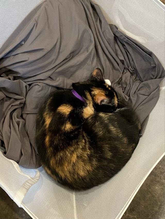 I’m retiring a set of sheets and gave them a good wash and dry, then Izzy the cat discovered them in the laundry basket.